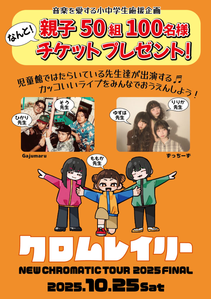 児童館ではたらいている先生達が出演する、クロムレイリーライブコンサートのチケットをプレゼントします!