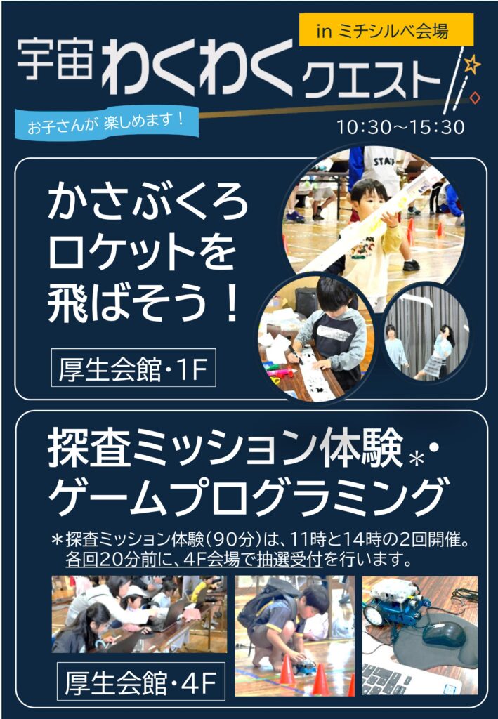 体験会以外には多くのプログラムが用意されていますのでぜひご来場して頂きますようによろしくお願いいたします。